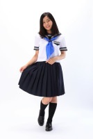 セーラー上衣は、ぶかぶかで着用するものです。伸縮しないので、肩幅とバストの双方が少なくともワンサイズは余裕があるように選んでください。